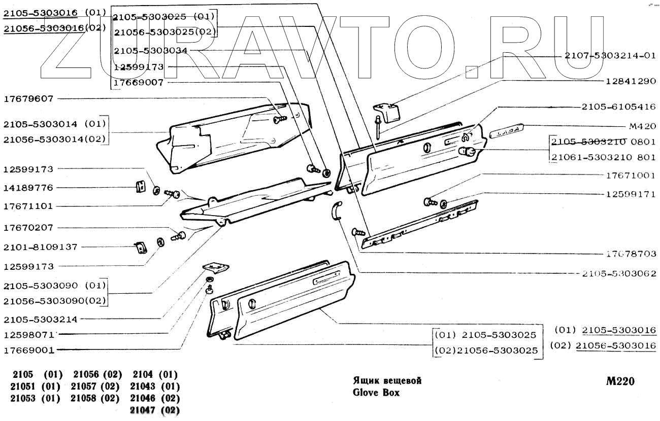 | 2105-5303016 | 2105-5303016 | Крышка вещевого ящика в сборе (01) | Нет в продаже |