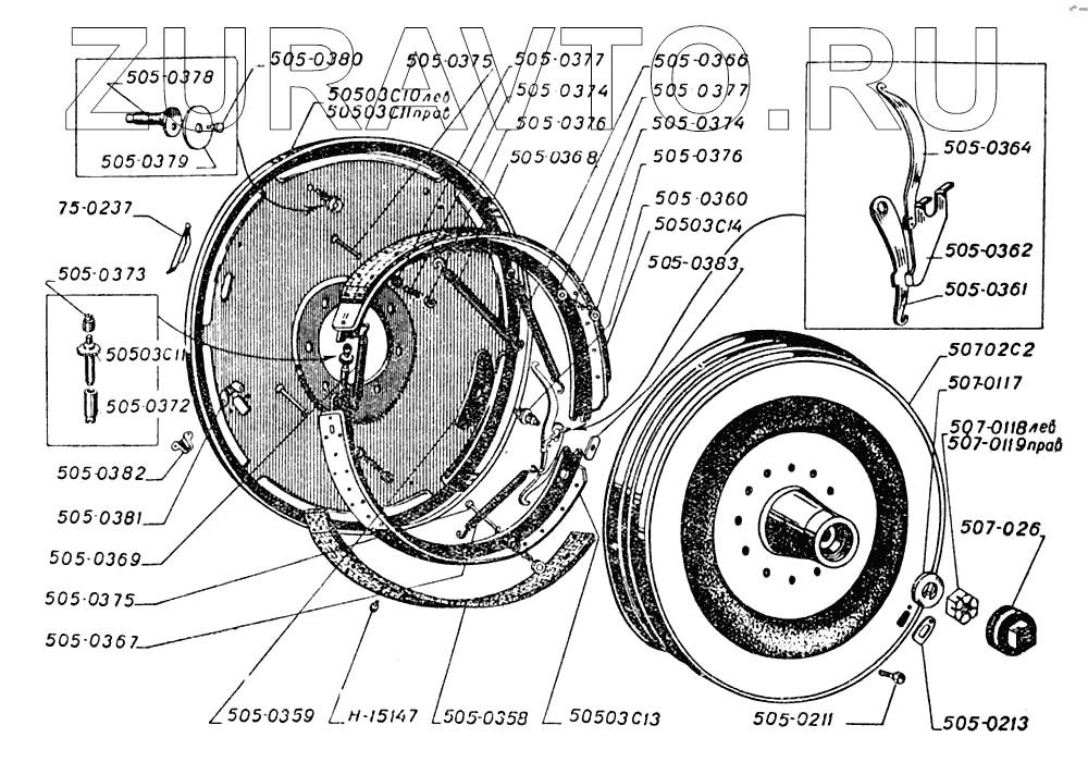 | 507-03С13 | 507-03С13 | Диск защитный правый с тормозными колодками в сборе | Нет в продаже |