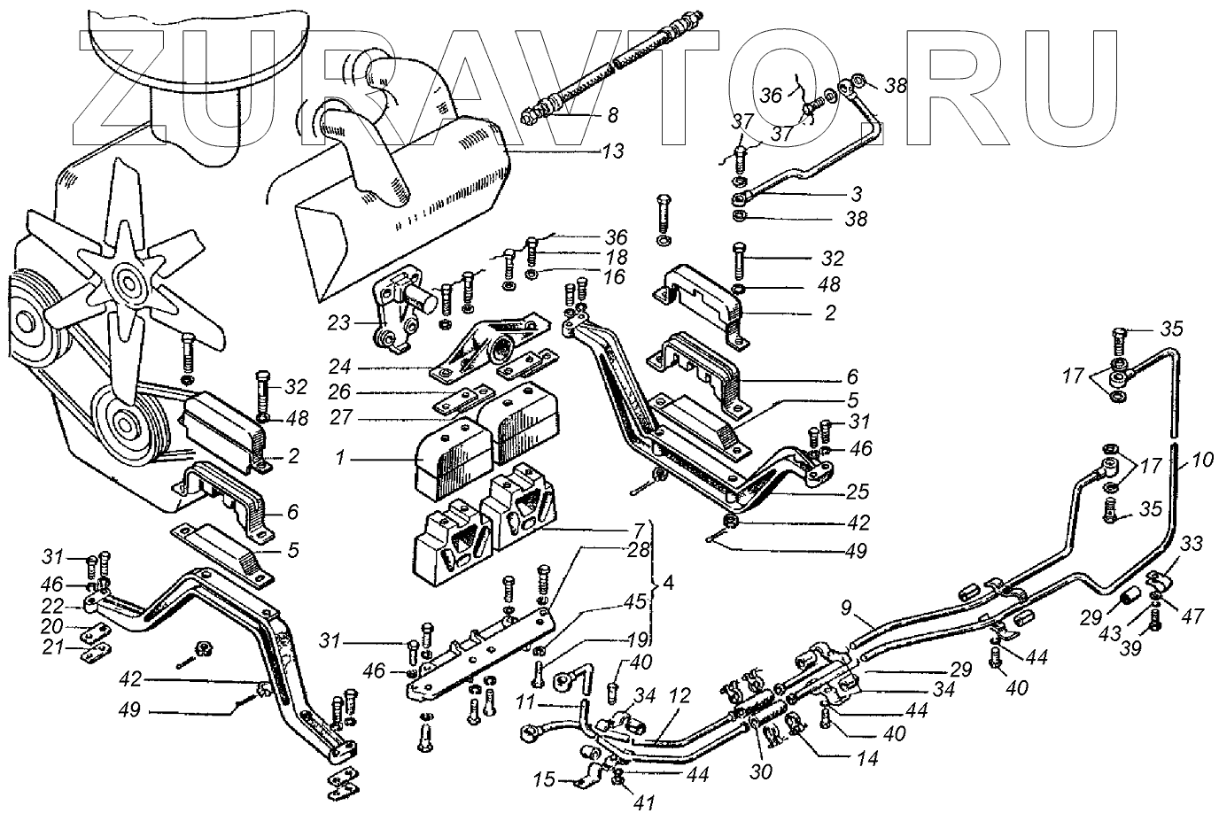 | 4 | 150.00.064-1 | Кронштейн опорный с подушками | Нет в продаже |