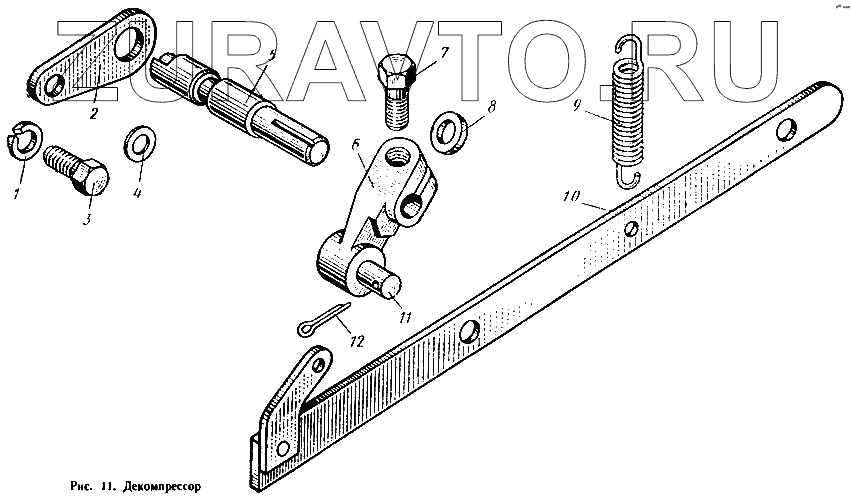 | 6 | Д37М-1019050-А | Рычаг декомпрессора с пальцем в сборе | Нет в продаже |