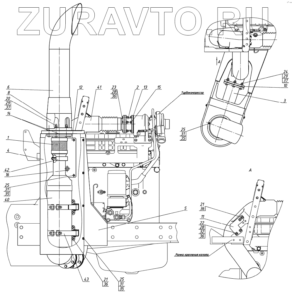 | 41 | Трубопровод | Выхлопной трубопровод со стандартным смесителем DNOX, с сильфоном | Нет в продаже |