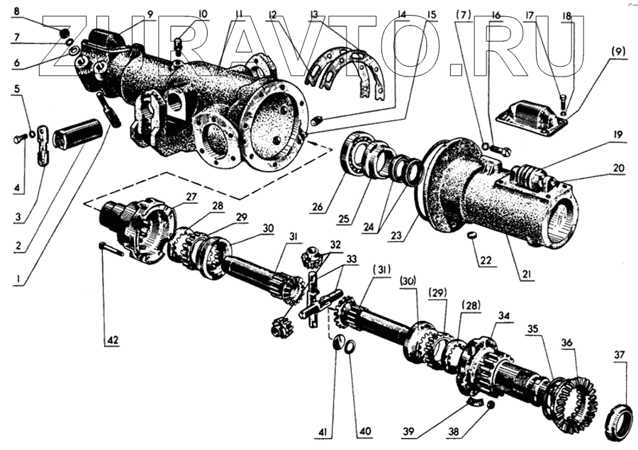 | 35 | 52-2302042/43 | Прокладки регулировочные В = 0,5, В = 0,2 мм (подбираются при регулировке подшипников) | Нет в продаже |