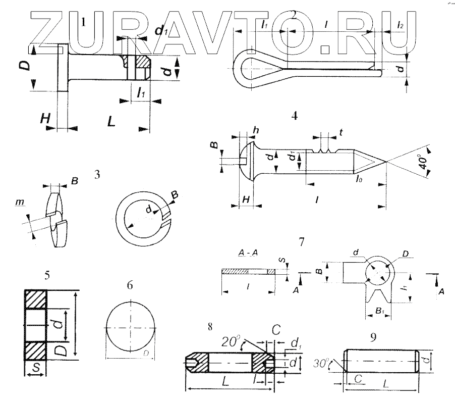 | 2 | 4x40 | Шплинт ГОСТ397-79 (d=3,7, D=7,4, L1=8,0, L2=4, L=40) | Нет в продаже |