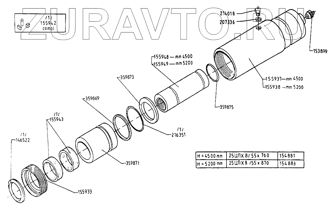 | 4 | 2850.00.00-02 | Плунжерный гидравлически цилиндр 25ЦПХ8/55х870 | Нет в продаже |