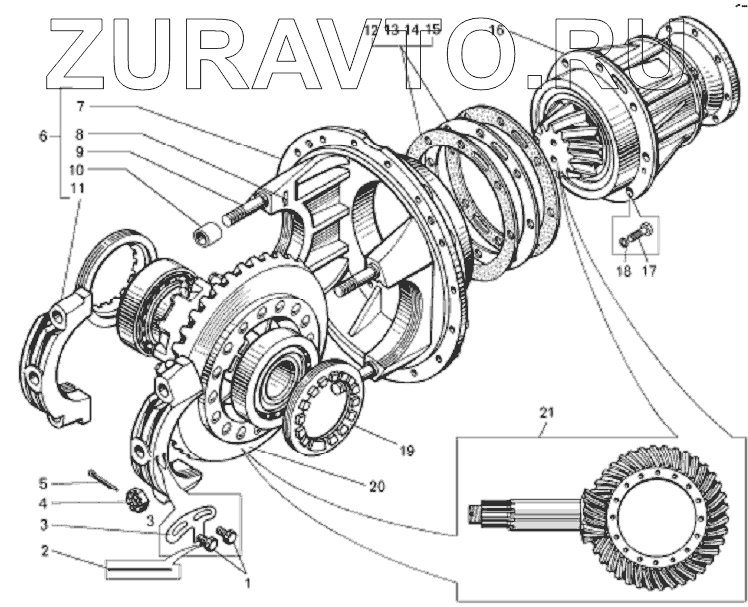 | 21 | 7822-2402020 | Шестерня ведущая и ведомая главной передачи комплект для запчастей | Нет в продаже |
