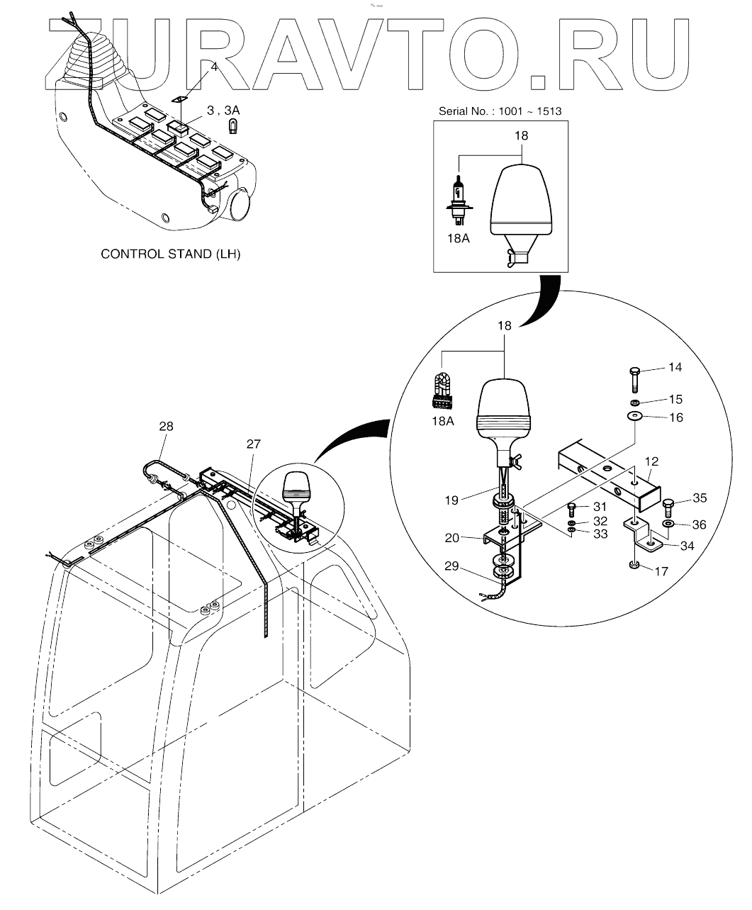 | 18A | 515-00013 | BULB;HALOGEN H1 24V 70W | Нет в продаже |