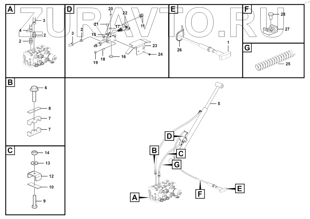 | 7 | 25060000391 | Pipe clamp 4, for fixing steer cylinder hose | Нет в продаже |
