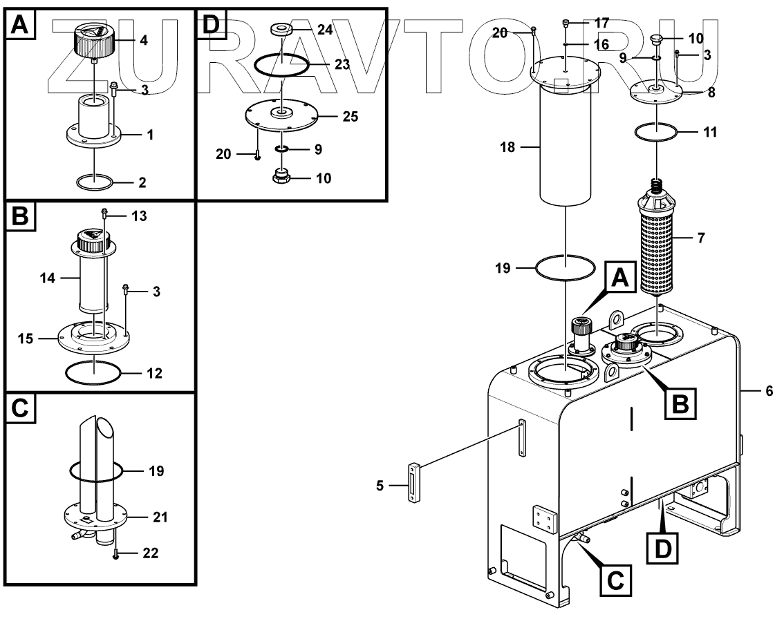 | 6 | 29100030391 | Hydraulic fluid tank | Нет в продаже |