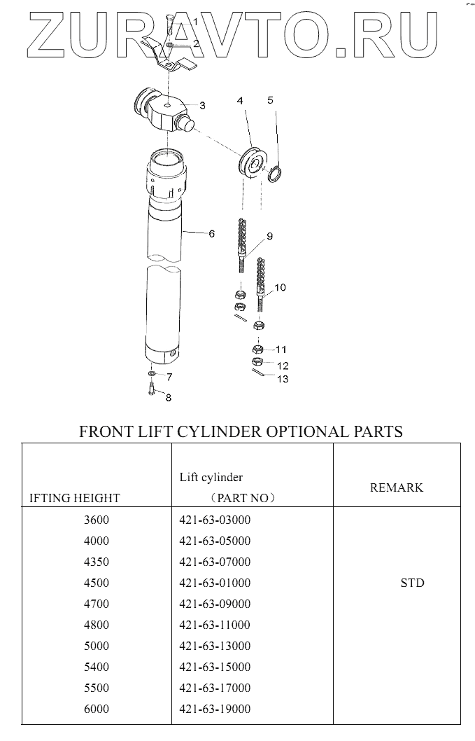 | 6 | 421-63-01000 | Front lift cylinder | Нет в продаже |